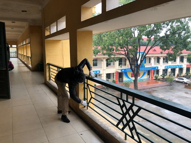 Trong thời gian học sinh không đến trường nhưng các lớp học vẫn luôn sạch sẽ, từng cái bàn, cái ghế, góc lớp, cửa sổ, hàng lang…đều được các thầy cô giáo chủ nhiệm hàng tuần lau chui, quét dọn sạch sẽ. Khuôn viên trường học vẫn luôn sạch sẽ, xanh mát, hoa ở các bồn vẫn nở rộ, khoe sắc. Các thầy cô giáo chủ nhiệm của các lớp vẫn nhổ từng cây cỏ ở bồn hoa, tưới mát cho từng cây hoa ở trong bồn vì thế mà chậu vạn niên thanh vẫn xanh mướt, cây ngũ sắc vẫn rực rỡ sắc màu, cây hoa giấy vẫn phô sắc hồng tím trong nắng xuân.
